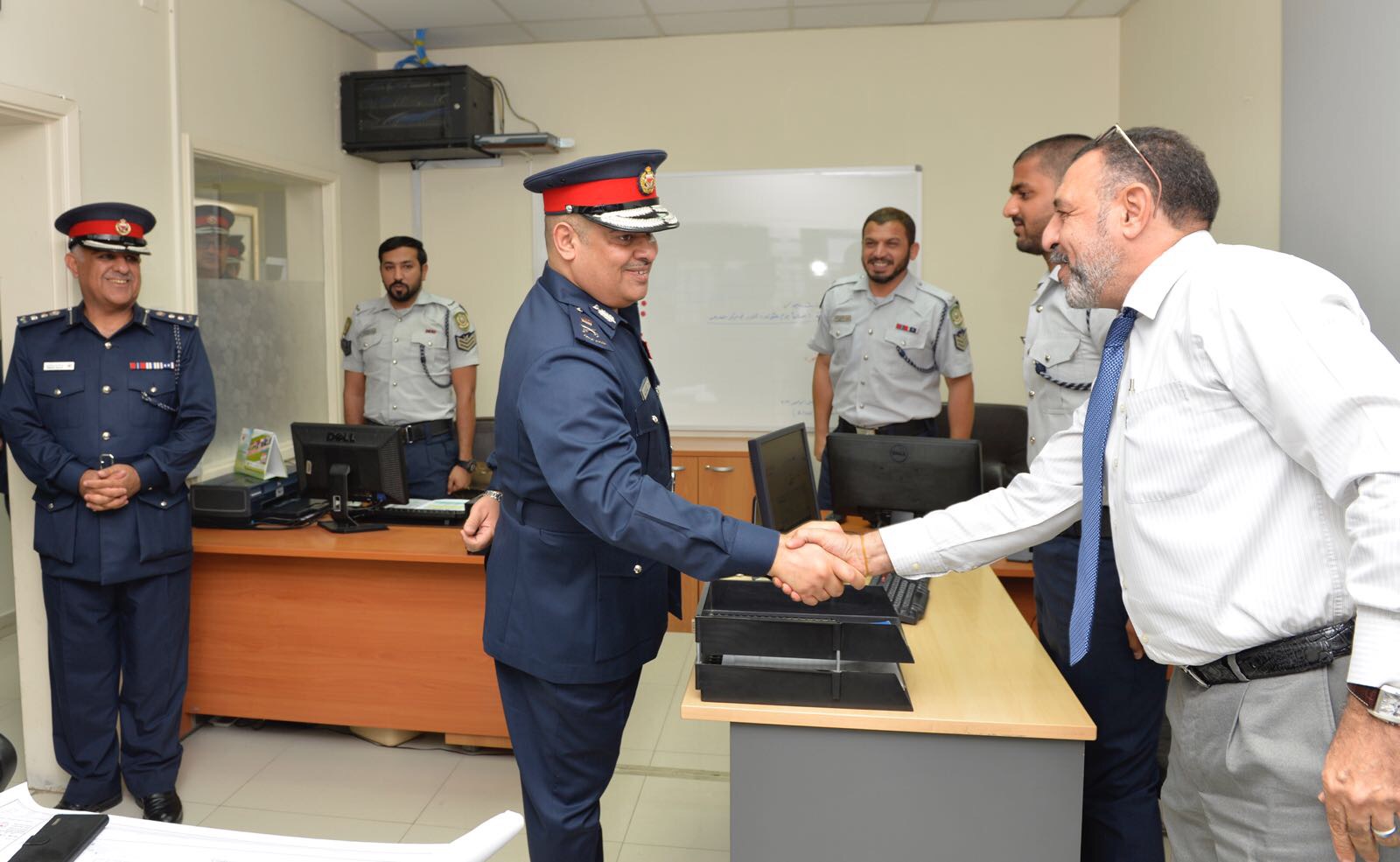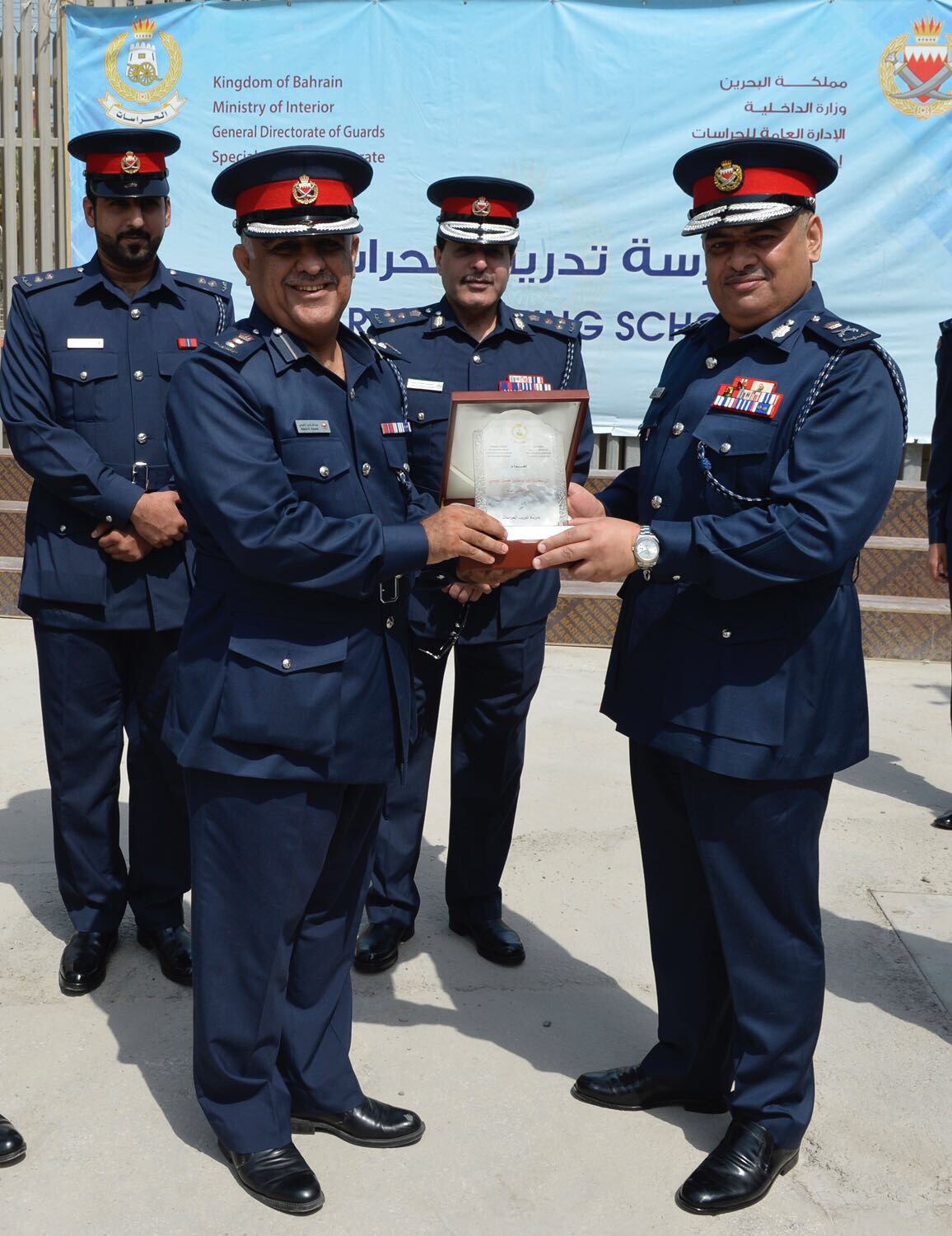 رافق رئيس الأمن العام ، كل من العميد الشيخ خليفة بن أحمد آل خليفة نائب رئيس الأمن العام ، العميد ركن الشيخ حمد بن محمد آل خليفة مساعد رئيس الأمن العام للعمليات والتدريب، العميد محمد بن دينه مساعد رئيس الأمن العام لشئون المجتمع والمشرف على إدارة الإعلام الأمني ، العميد عادل أمين الوكيل المساعد للموارد البشرية.